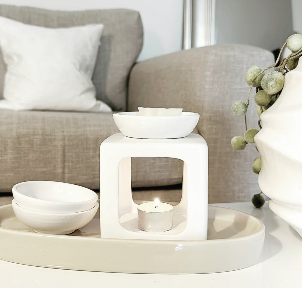 This beautiful ceramic wax burner comes with a difference. The Milan Trio has 3 separate dishes so that you can burn different scents each night without having to clean out your burner and before your wax melt is actually ready to be thrown away, saving wastage and saving you money! Essentially this is 3 burners for the price of 1!